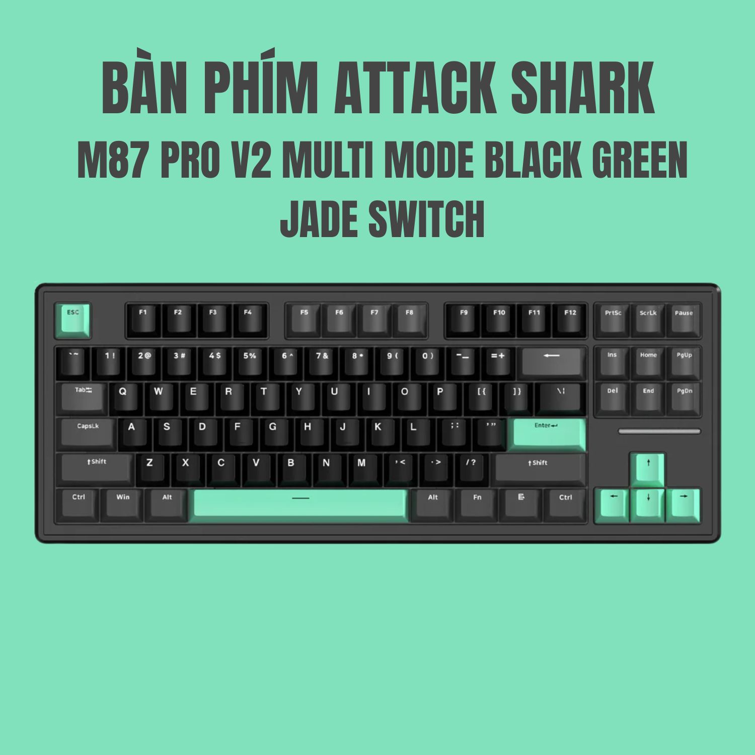 BÀN PHÍM CƠ ATTACK SHARK M87 PRO V2 MULTI MODES BLACK GREEN JADE SWITCH