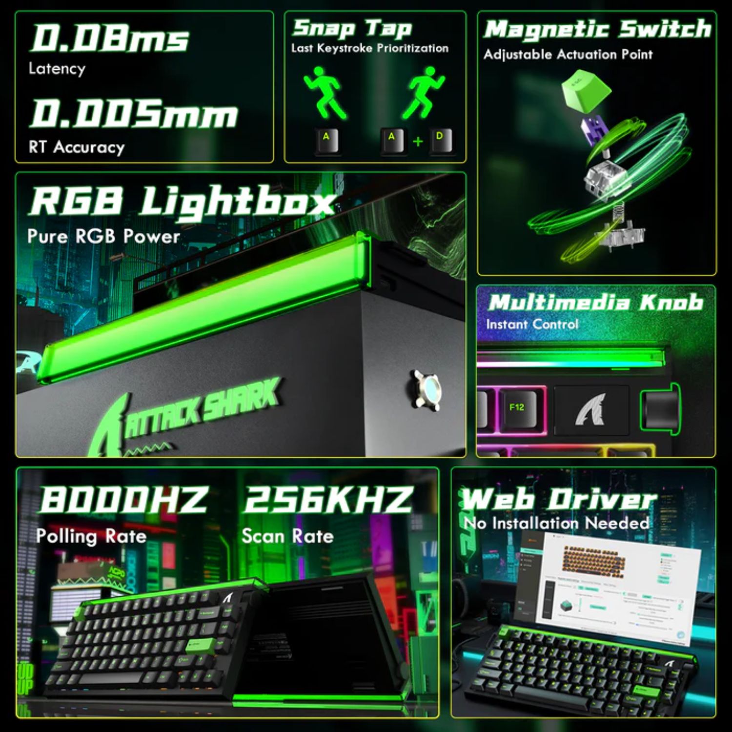 BÀN PHÍM CƠ ATTACK SHARK R85HE 8K NEON GREEN MAGNETIC AMBER SWITCH