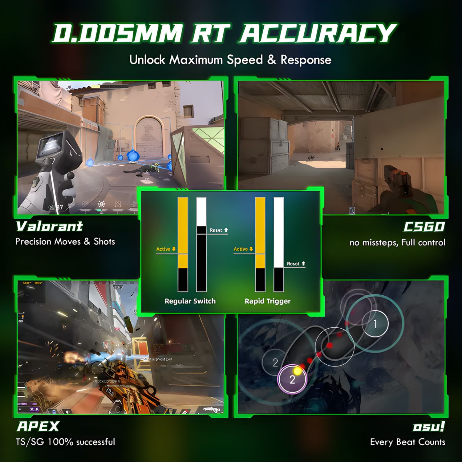 Độ chính xác Rapid Trigger (RT): 0.005mm (Mức tinh chỉnh cực kỳ chi tiết)