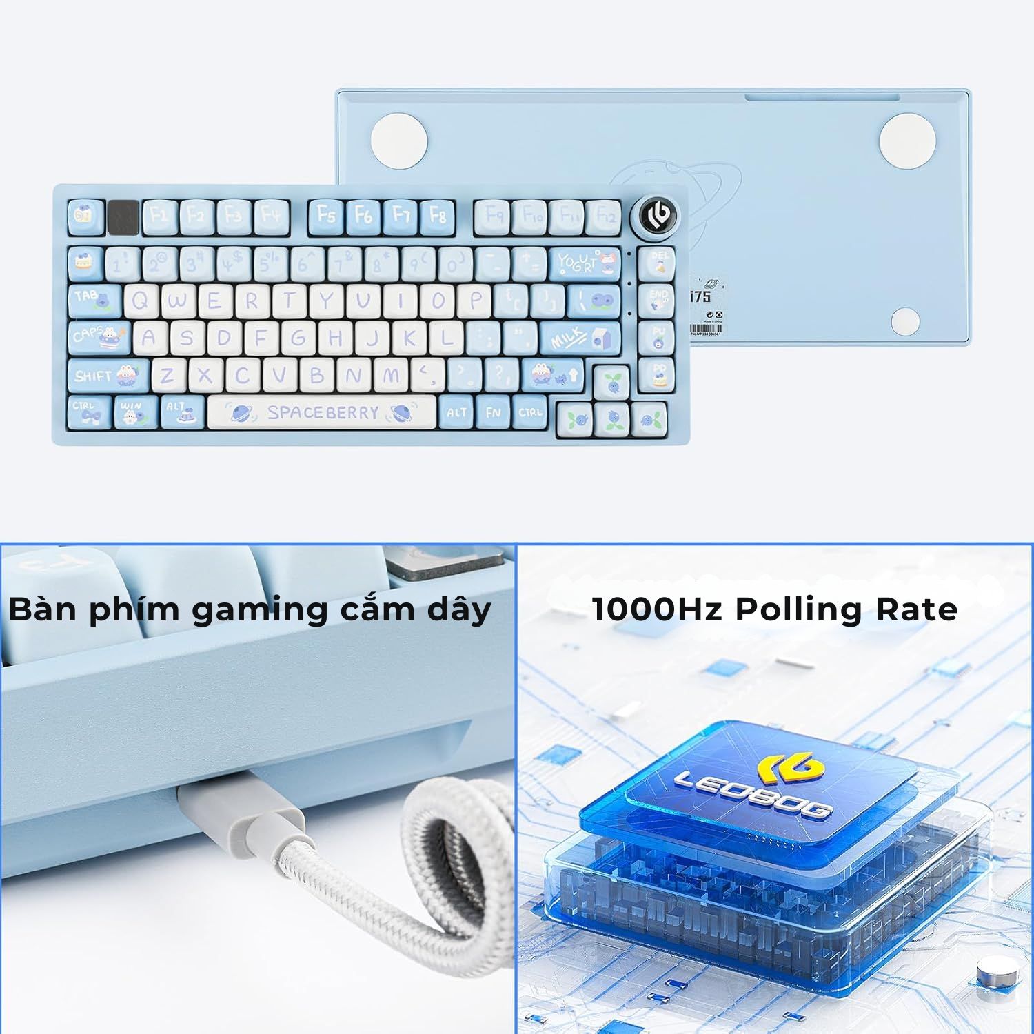 Tính năng khác: Full N-Key Rollover (NKRO) và Anti-ghosting - Có phần mềm riêng để tùy chỉnh keymap, macro và LED