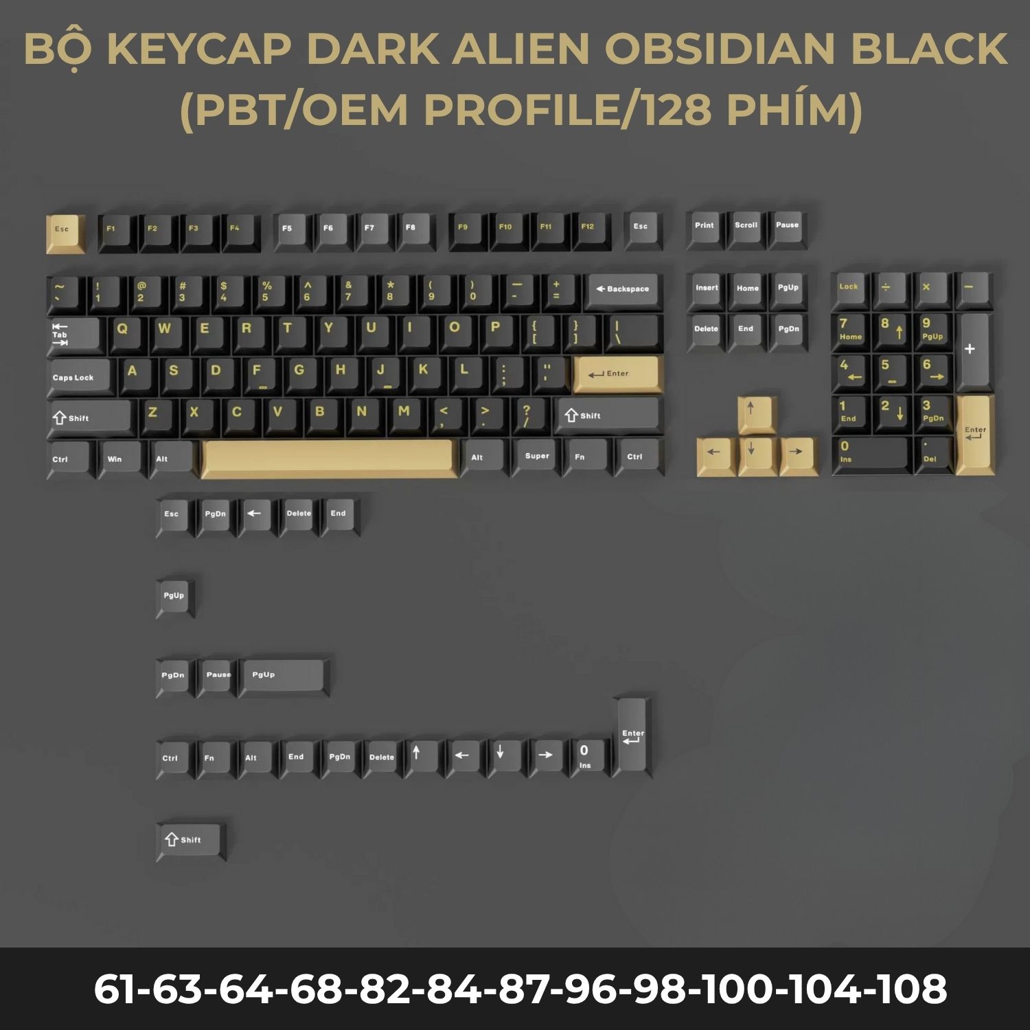 BỘ KEYCAP DARK ALIEN OBSIDIAN BLACK (PBT/OEM PROFILE/128 PHÍM)