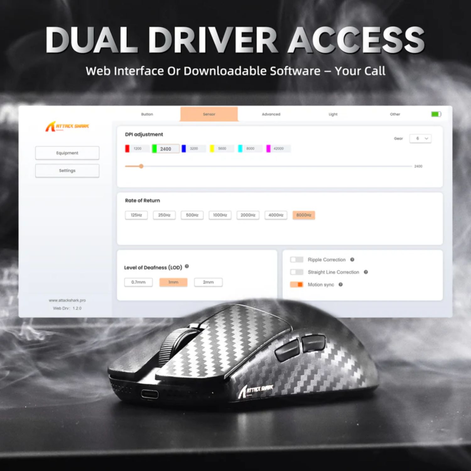 Điều khiển via Web / phần mềm để tuỳ chỉnh DPI, ánh sáng, macro …