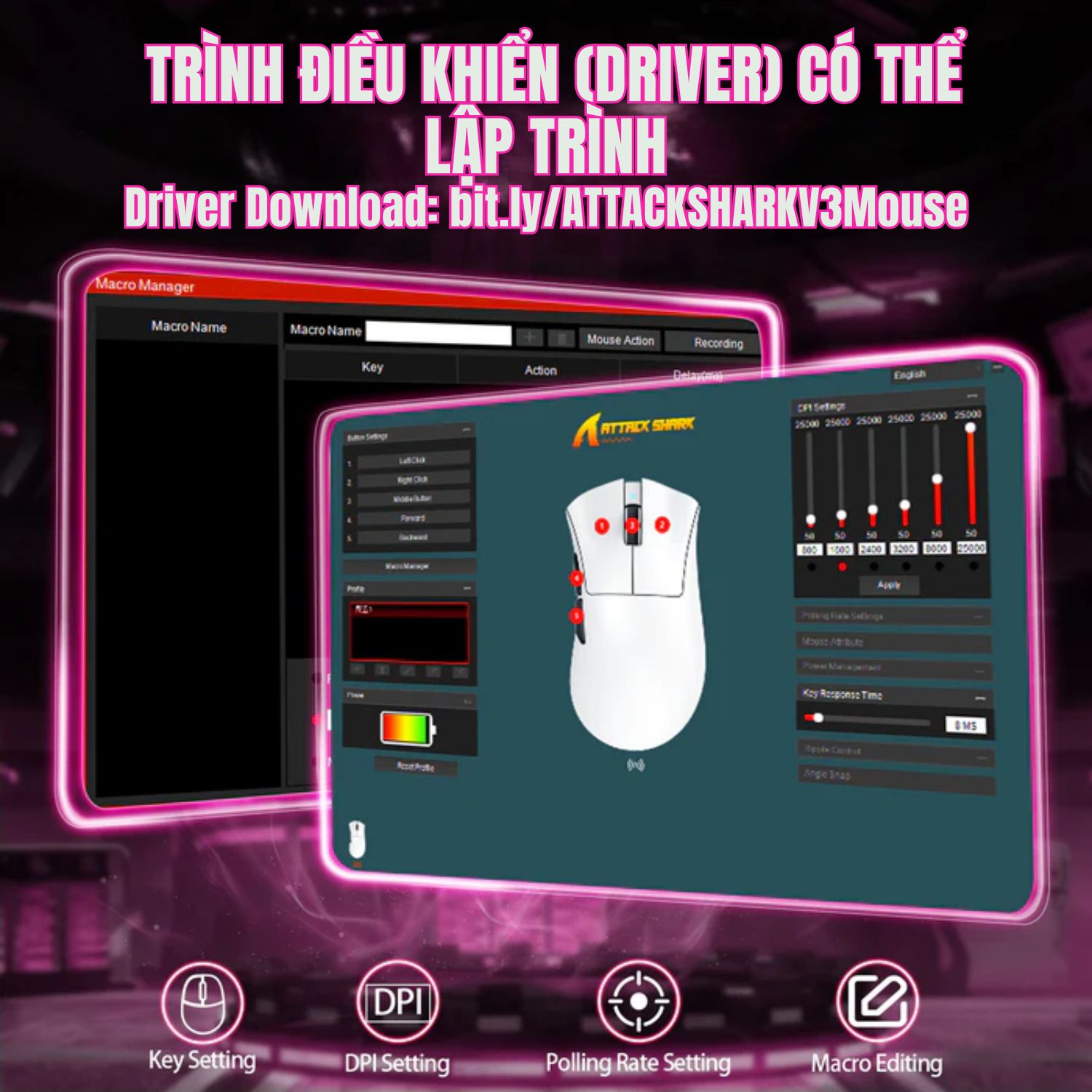 DPI: Tối đa 25.000 DPI (có thể điều chỉnh qua phần mềm)