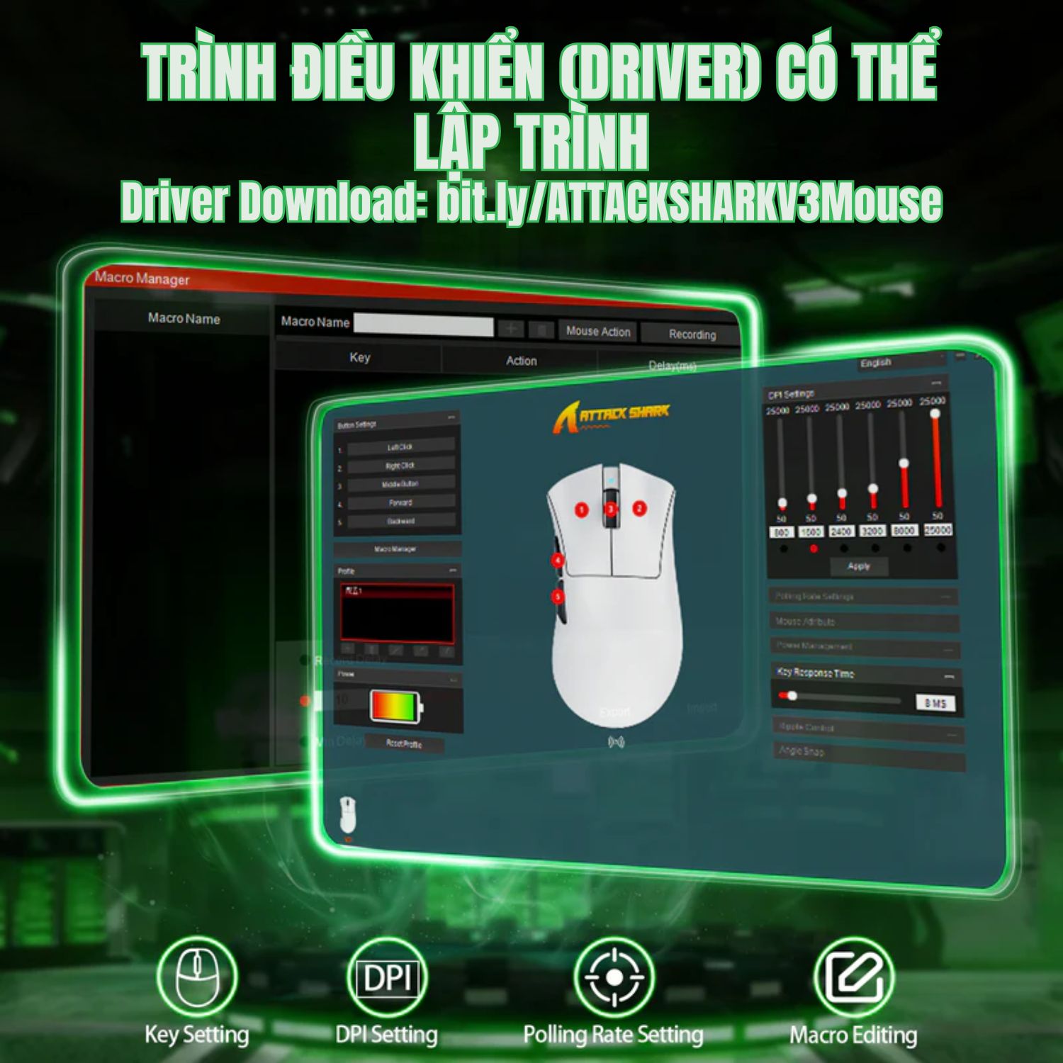 DPI: Tối đa 25.000 DPI (có thể điều chỉnh qua phần mềm)