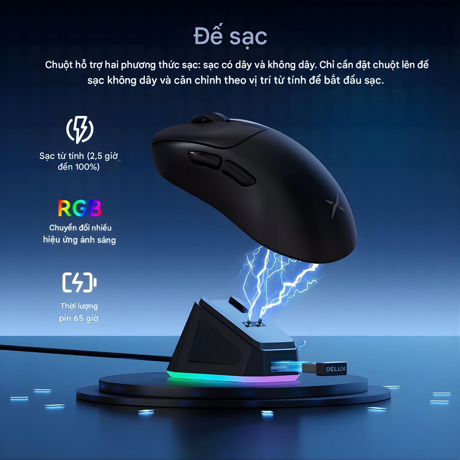 CHUỘT DELUX M500 PRO MULTI MODES ĐEN (PAW3395 MAX/58G)