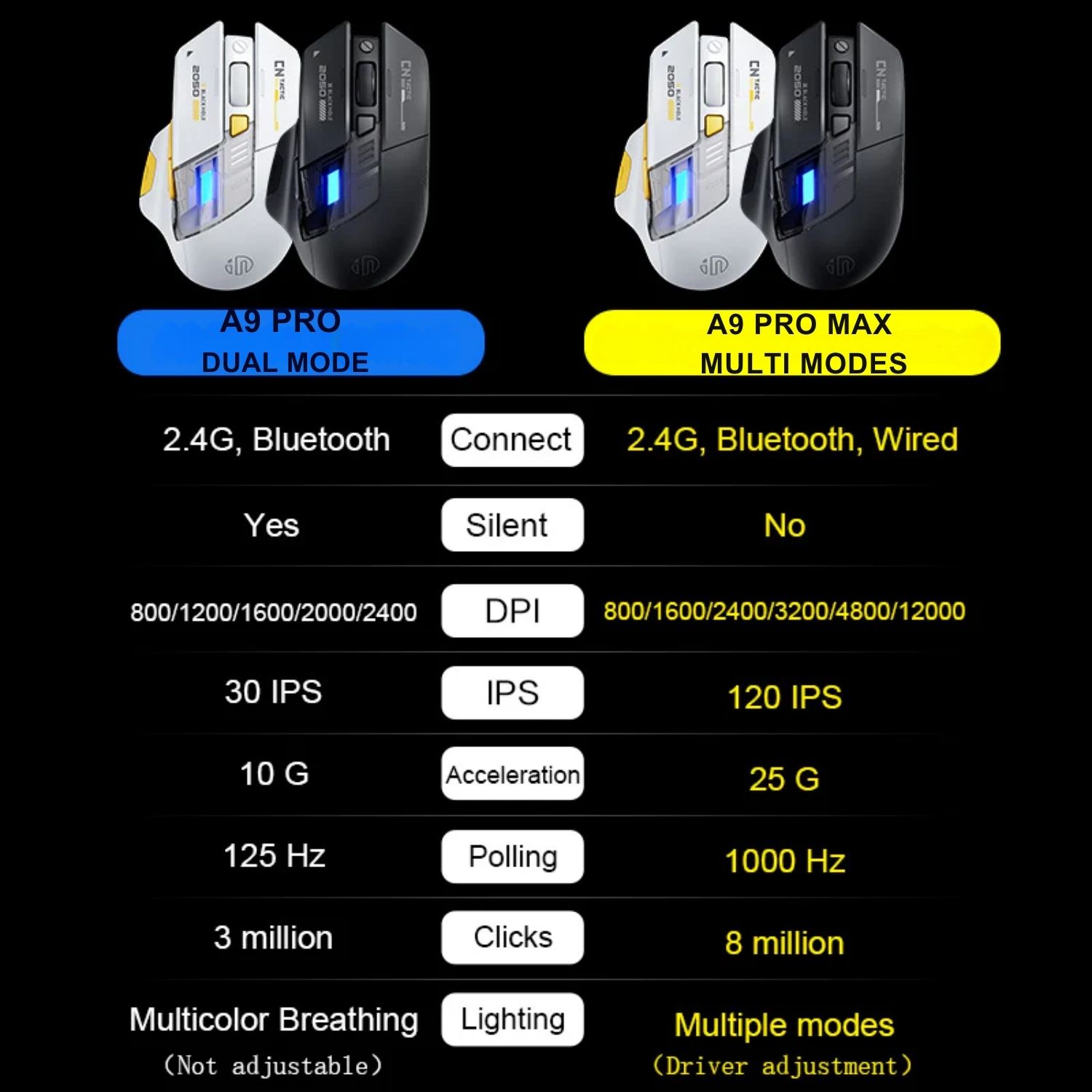 CHUỘT INPHIC A9 PRO DUAL MODE RGB SILENT SWITCH TRẮNG