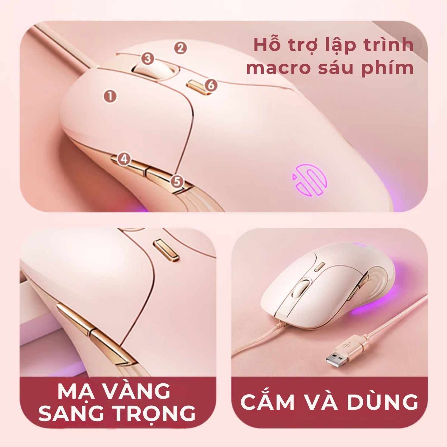 CHUỘT INPHIC B8 SILENT SWITCH HỒNG