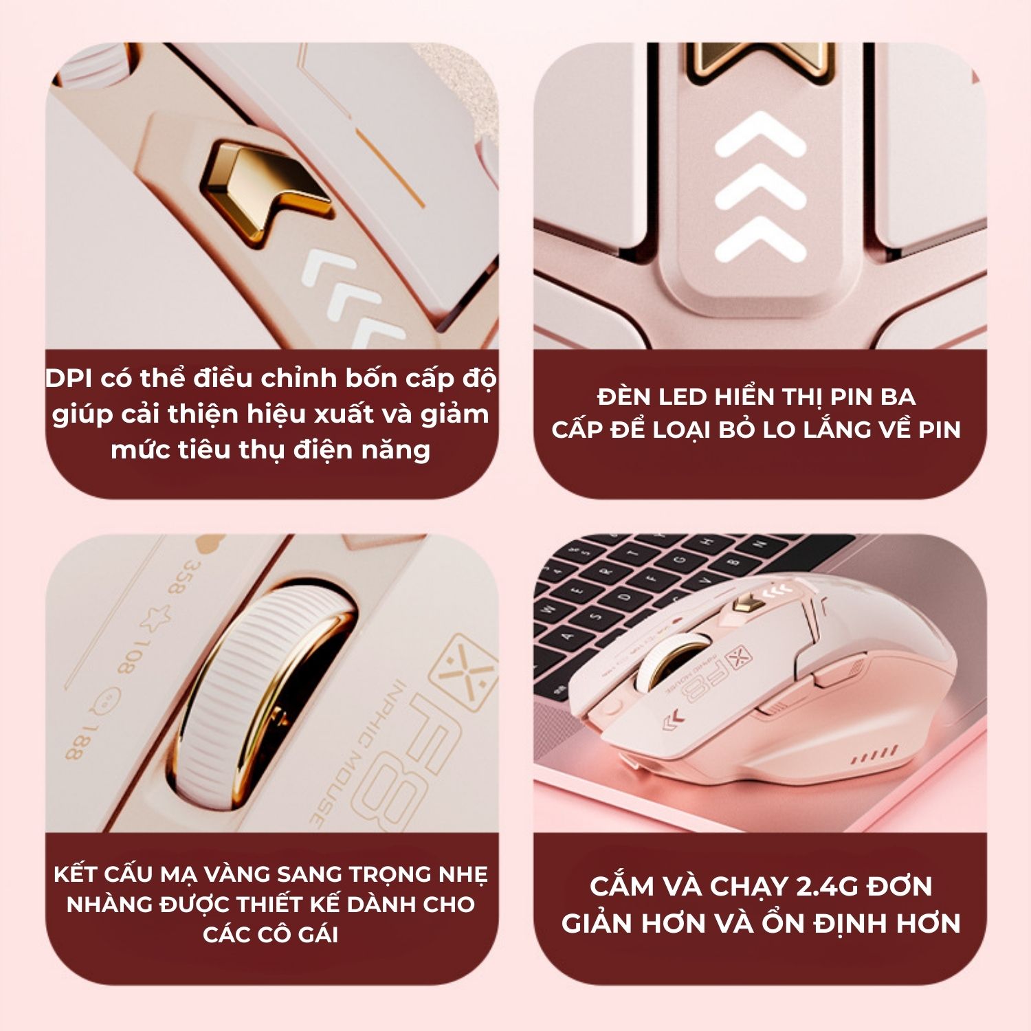CHUỘT KHÔNG DÂY INPHIC F8 VER2 SILENT SWITCH HỒNG