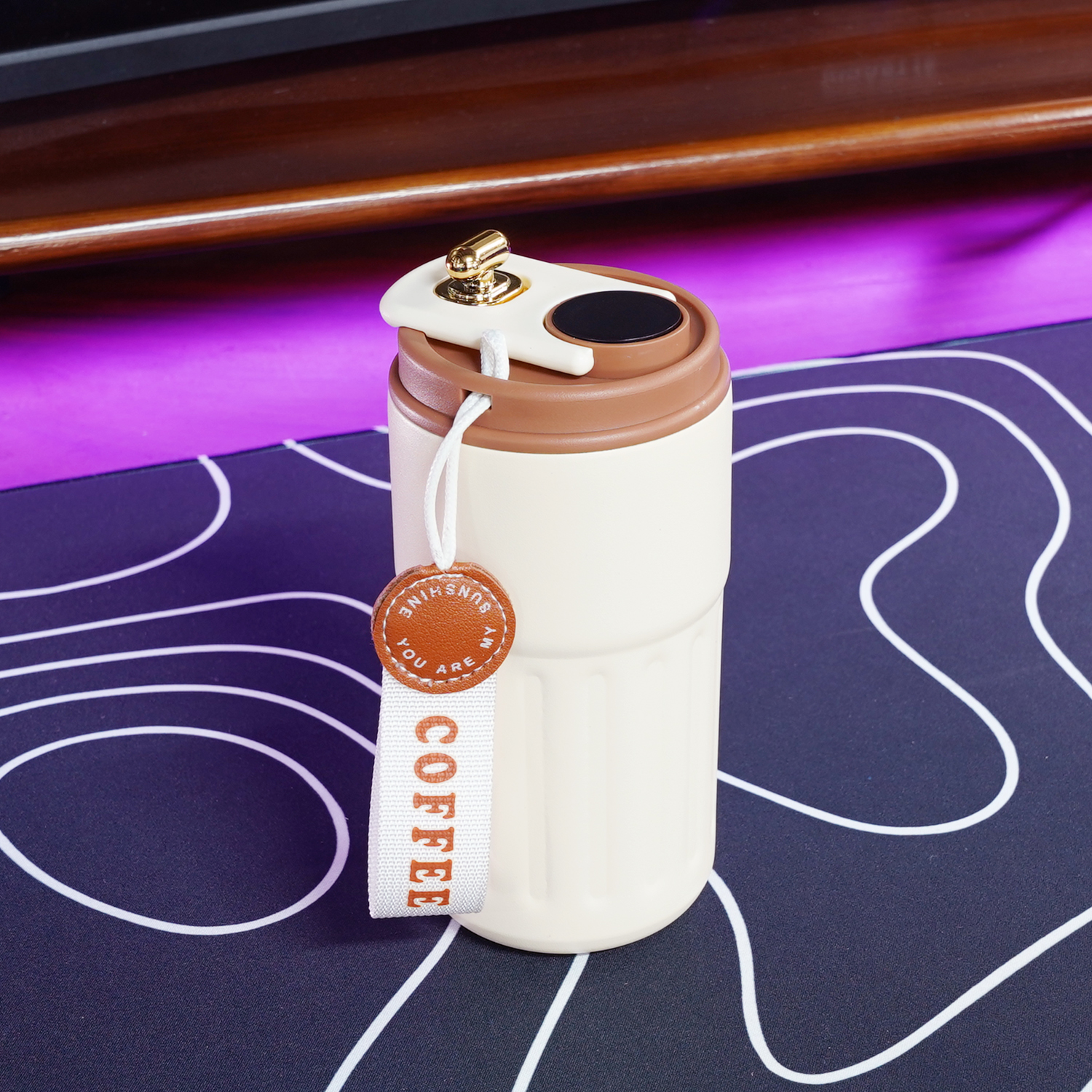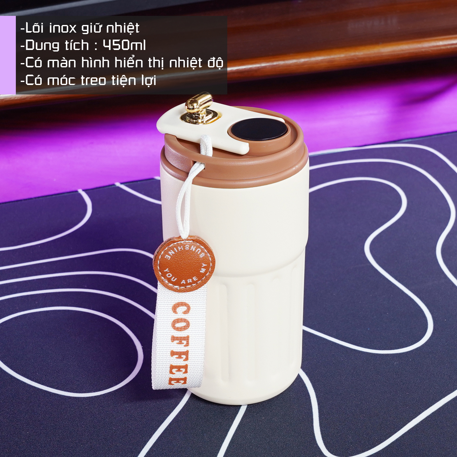 Cốc giữ nhiệt 450ml hiển thị nhiệt độ thông minh màu trắng nắp nâu