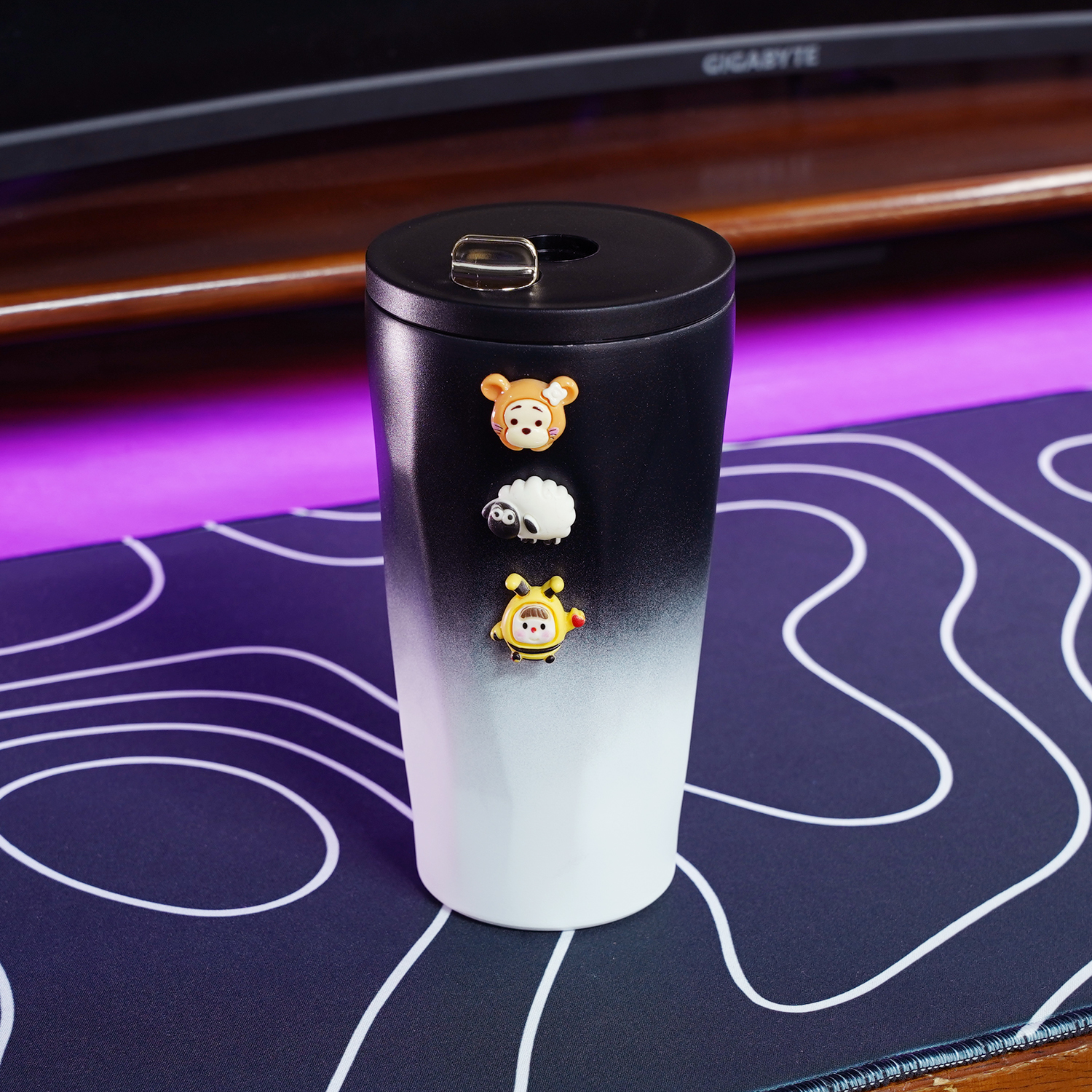 Cốc giữ nhiệt 600ml thời trang gradient trắng đen kèm sticker nổi
