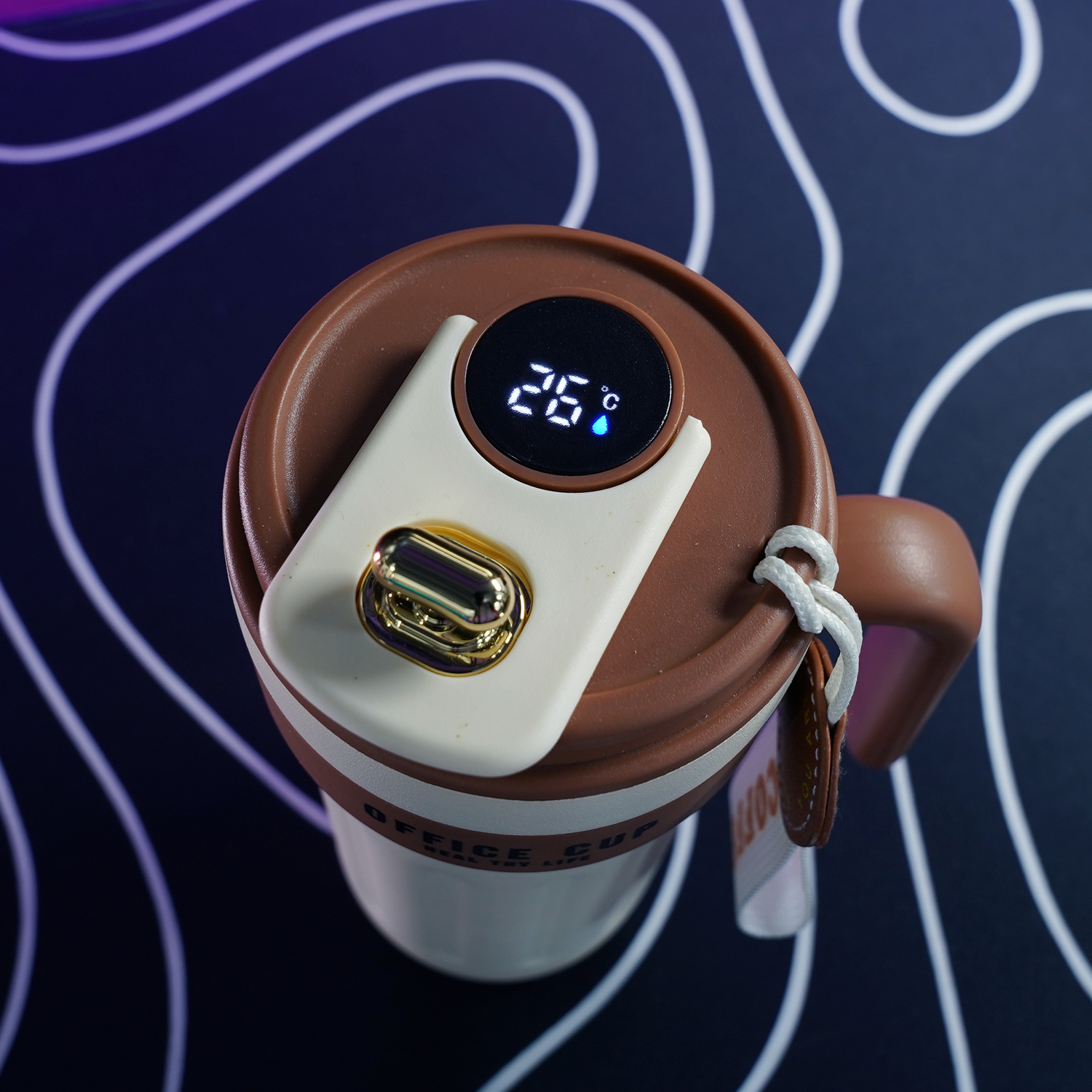 Cốc giữ nhiệt 700ml hiển thị nhiệt độ thông minh màu nâu trắng