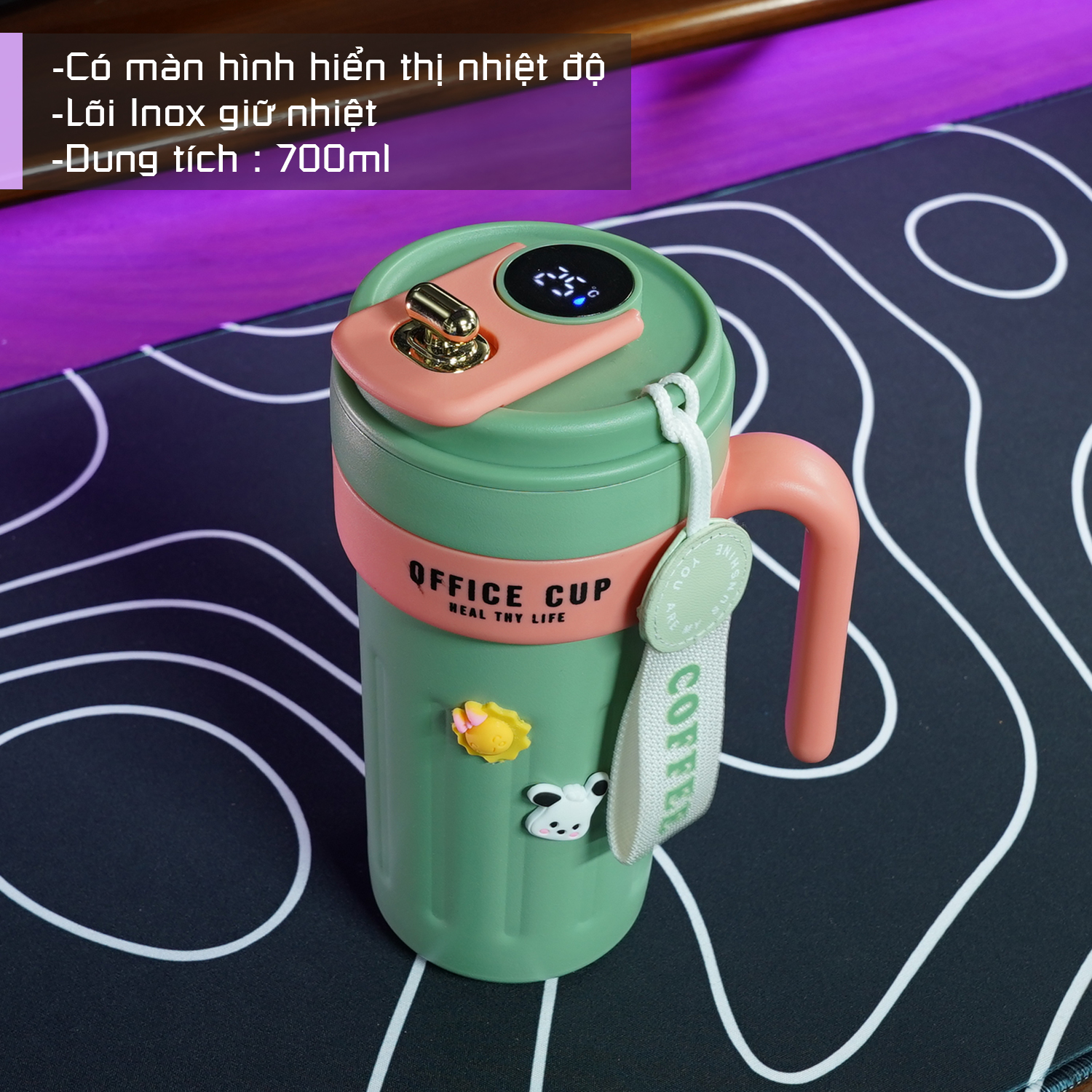 Cốc giữ nhiệt 700ml hiển thị nhiệt độ thông minh màu xanh hồng