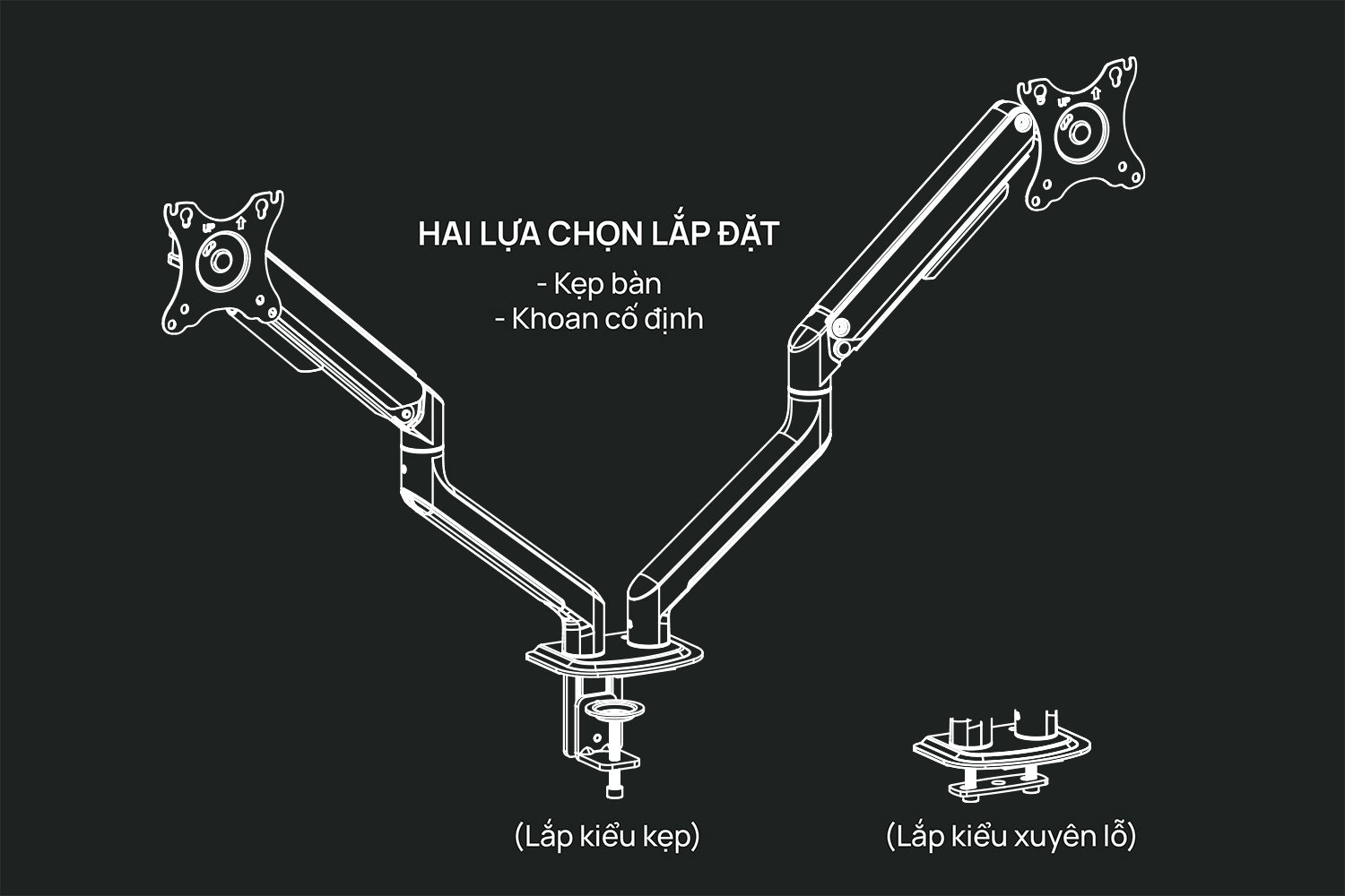 Hỗ trợ màn hình cho mức sử dụng cơ bản. Tải trọng hỗ trợ lên đến 9+9kg