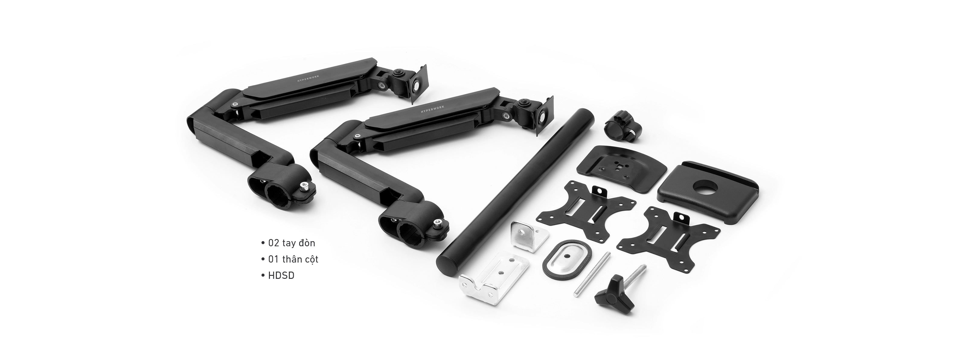 Cùng với chuẩn VESA 75x75 và 100x100 mm, mỗi tay đòn có thể nâng đỡ màn 22-34 inch (các kích cỡ phổ thông nhất của màn hình hiện nay). Điều này nhằm đáp ứng nhu cầu của nhiều người dùng, hỗ trợ setup 2 màn linh hoạt hơn, nhiều lựa chọn hơn.