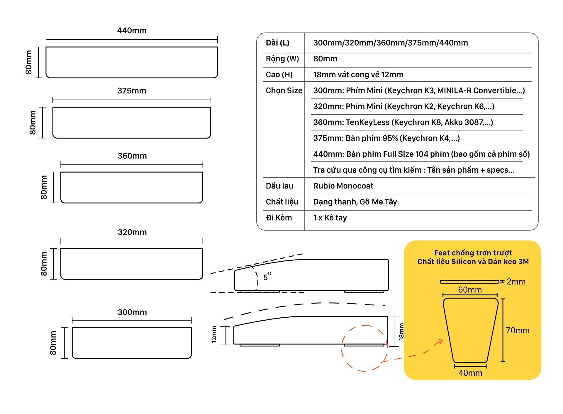 Sản phẩm kê tay gỗ dùng để tạo điểm tựa, tránh sai tư thế, giảm áp lực cho cổ tay. Được thiết kế tỉ mỉ với những góc bo mềm mại, bề mặt vát 5 độ đã đem lại cảm giác thoải mái khi làm việc nhiều giờ liền.Sản phẩm sử dụng chất liệu gỗ Óc Chó(Walnut) được nhập khẩu chính hãng đảm bảo chịu lực tốt, độ bền cao, màu sắc và vân gỗ có tính thẩm mỹ.