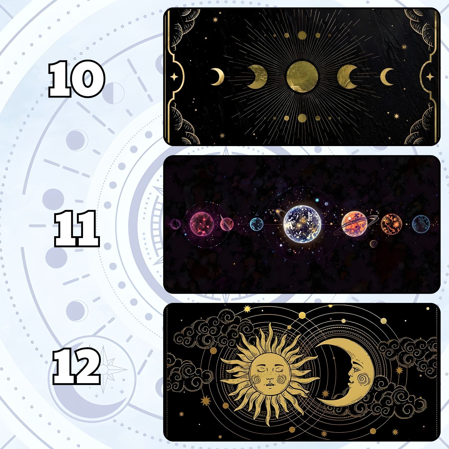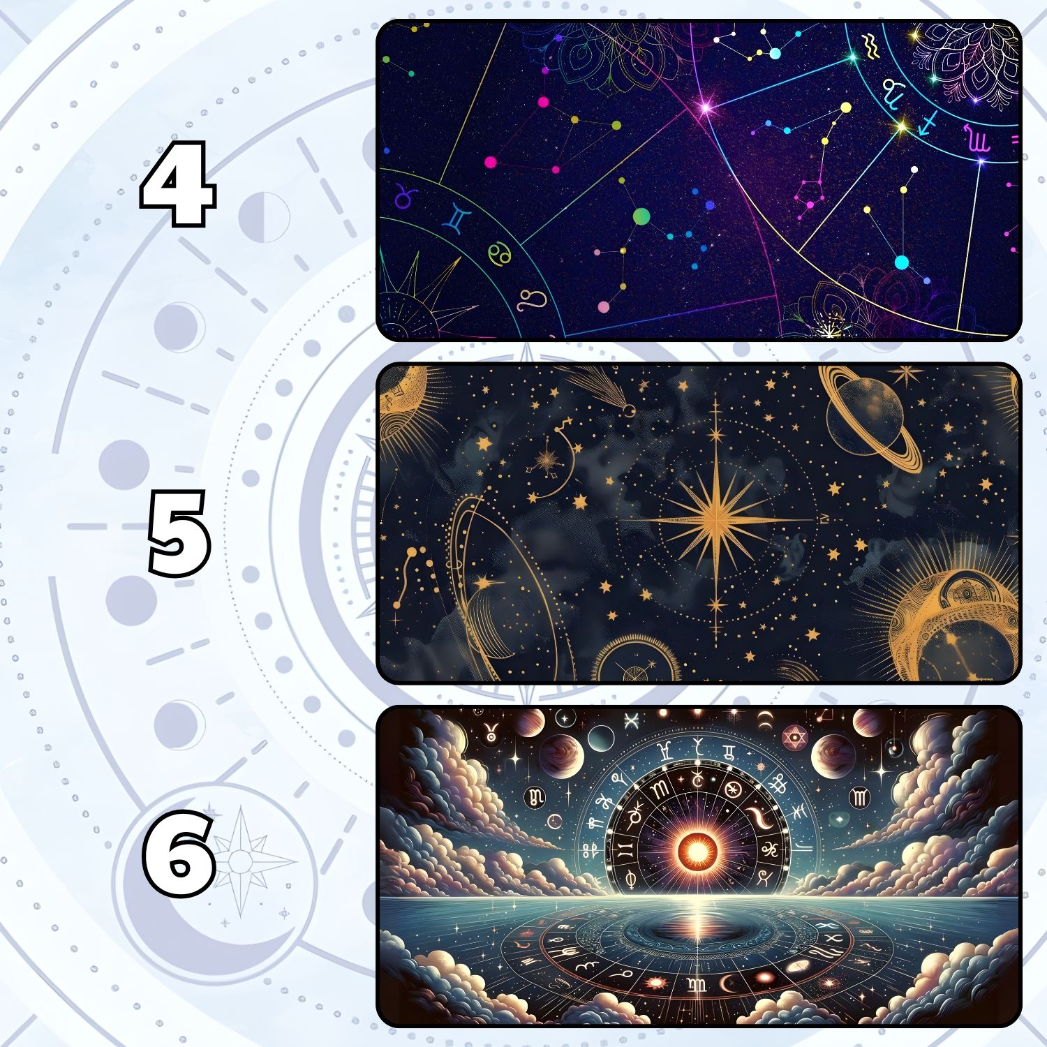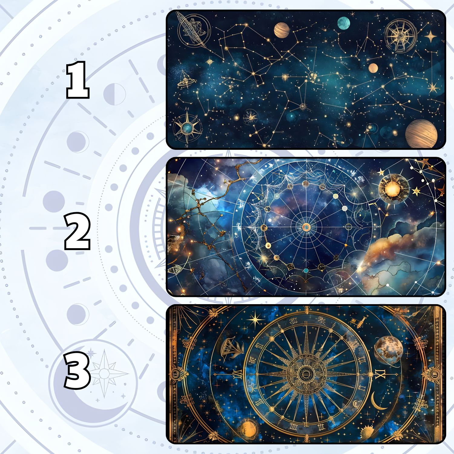 Thảm lót chuột/deskmat CHIÊM TINH ASTROLOGY ZODIAC siêu lớn 1200 × 600 × 3 mm – phủ trọn bàn 120×60 cm, tạo một bề mặt làm việc/gaming thống nhất cho màn hình + bàn phím + chuột.