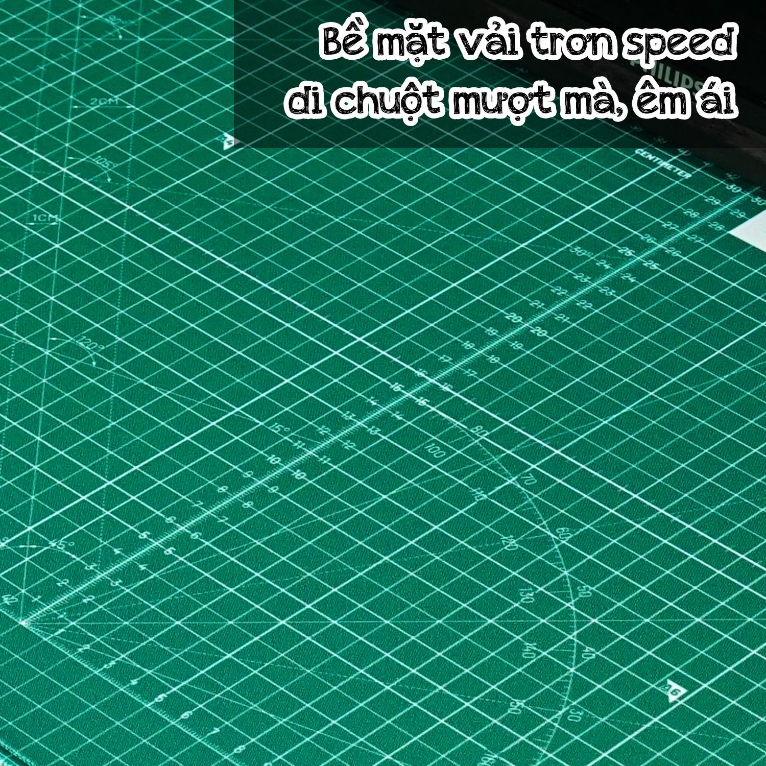 Mặt di vải speed dệt mịn cho độ ma sát thấp, lướt nhanh và chính xác—tối ưu cho game FPS/MOBA lẫn thao tác văn phòng.