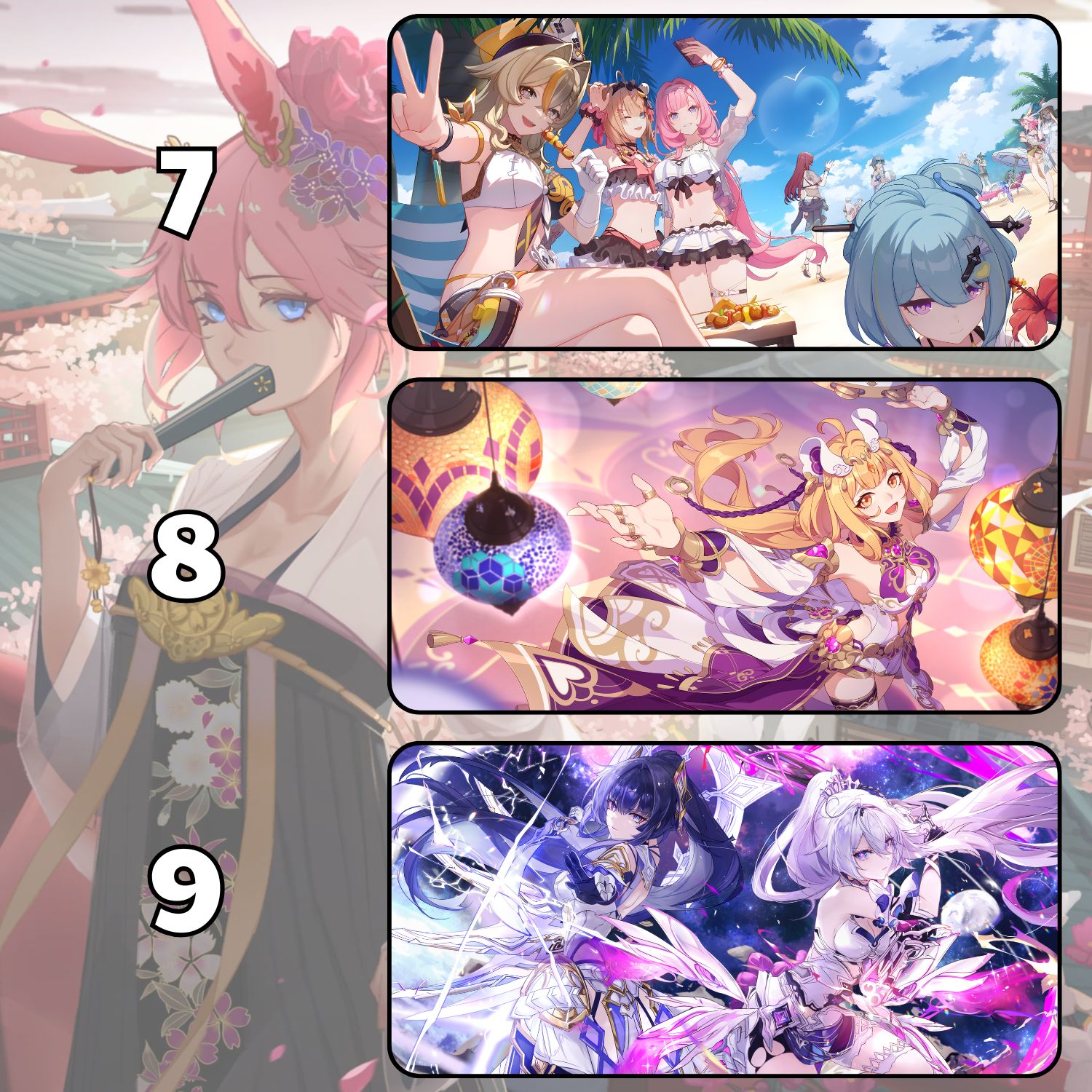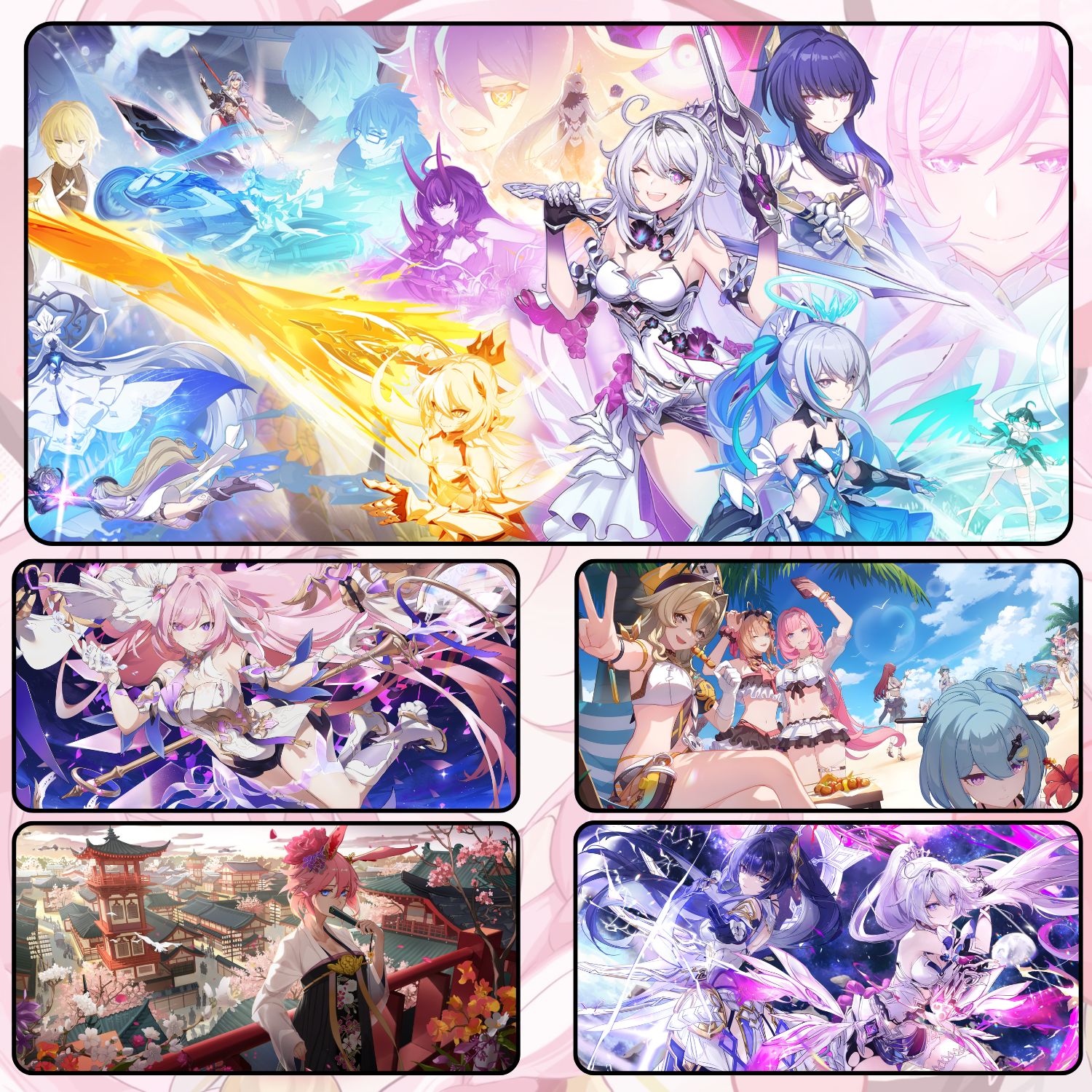 Thảm lót chuột/deskmat HONKAI IMPACT siêu lớn 1200 × 600 × 3 mm – phủ trọn bàn 120×60 cm, tạo một bề mặt làm việc/gaming thống nhất cho màn hình + bàn phím + chuột.