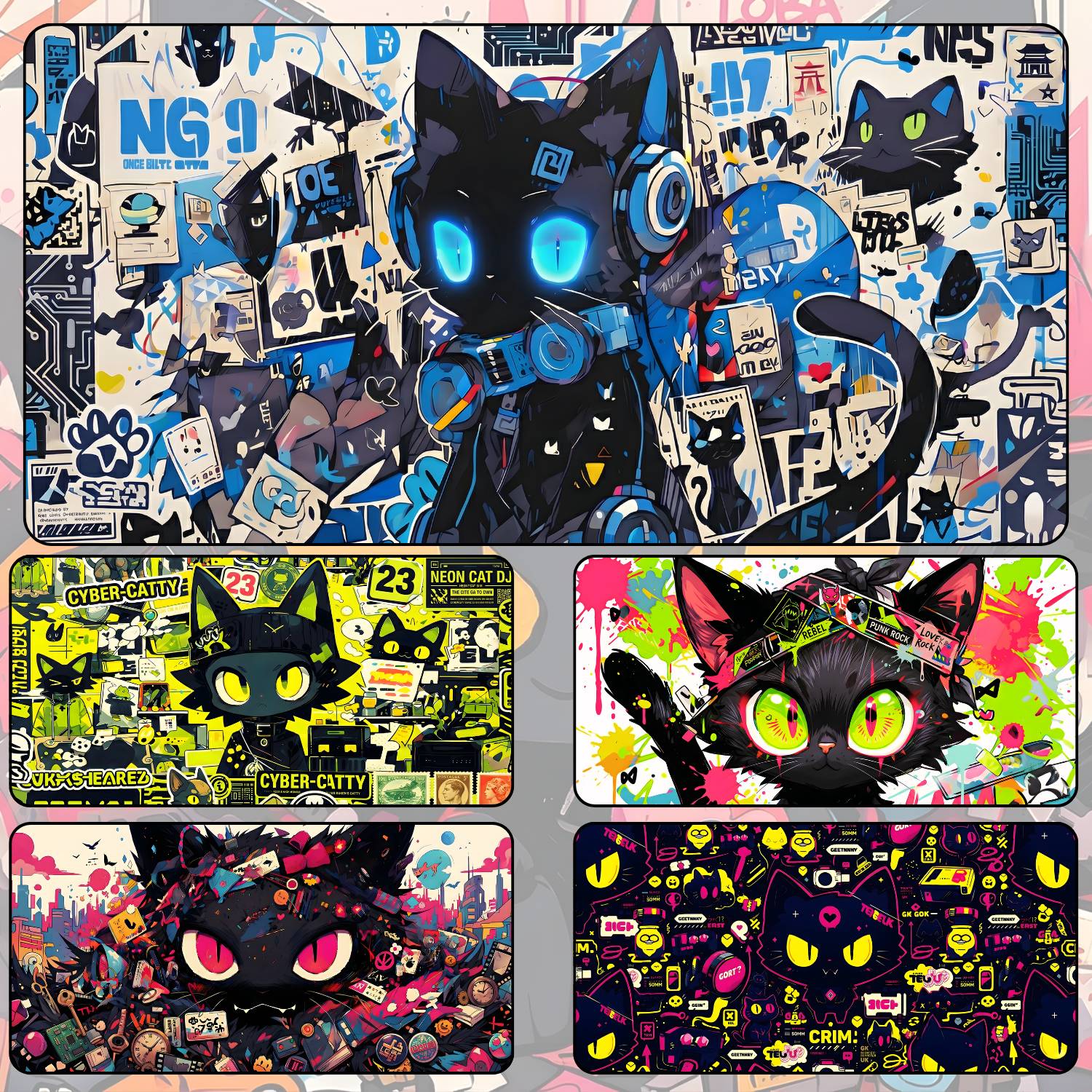 LÓT CHUỘT MÈO GRAFFITI 2026 CỠ LỚN SIZE 60X35 DÀY 3MM