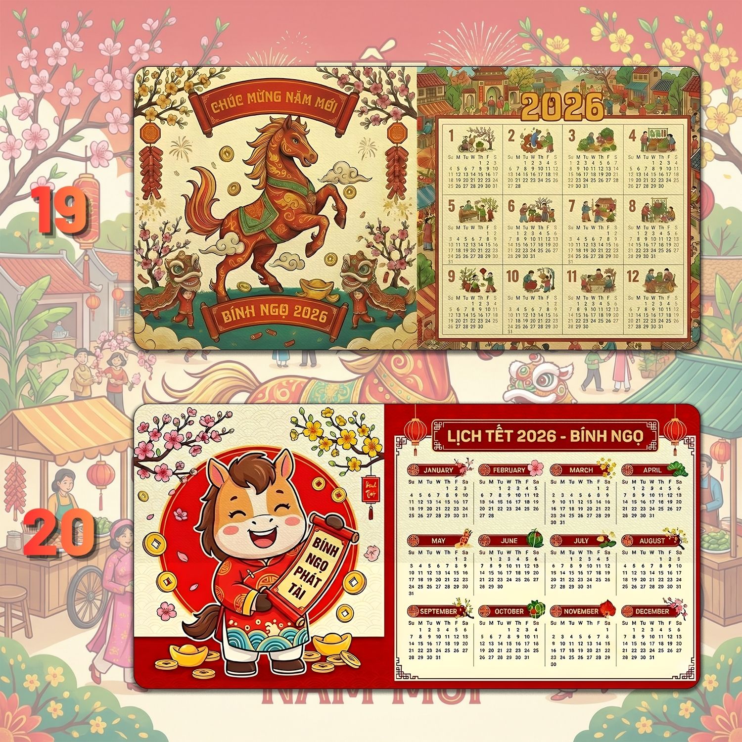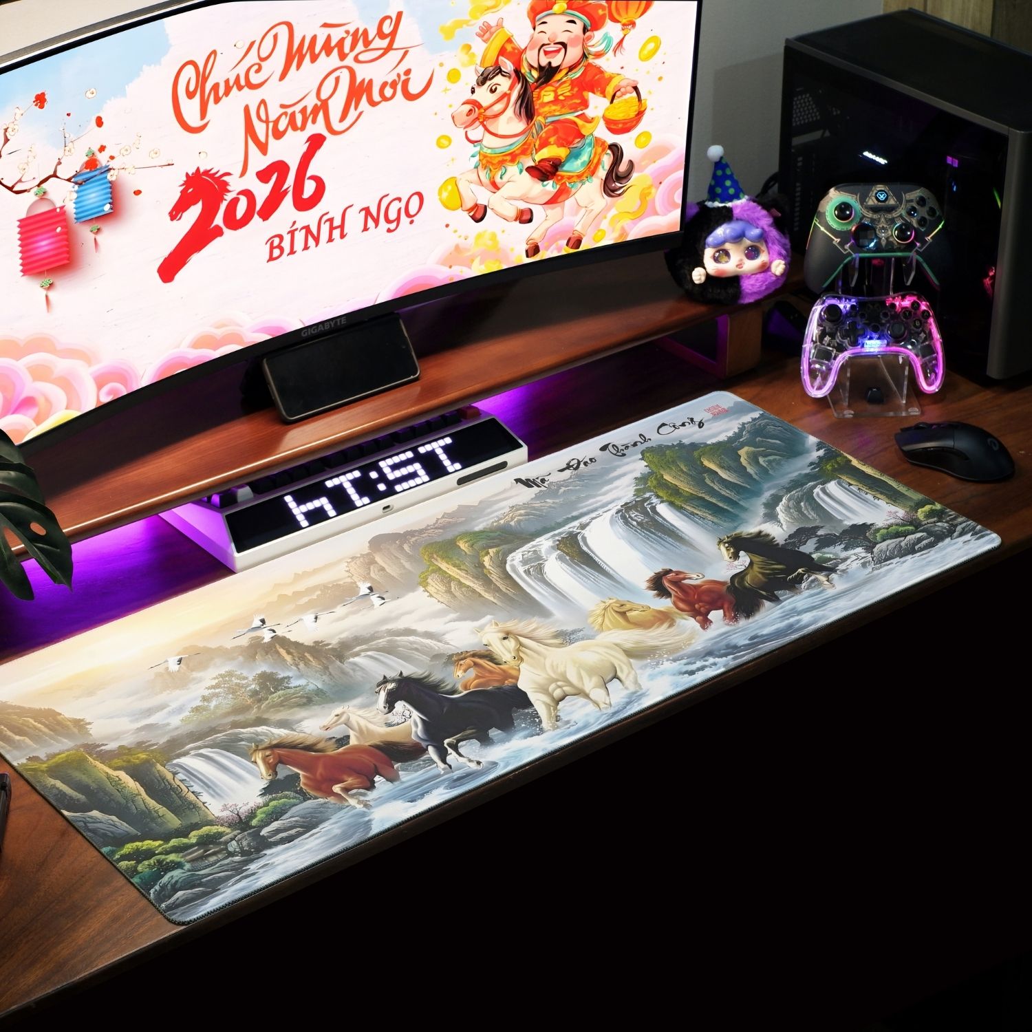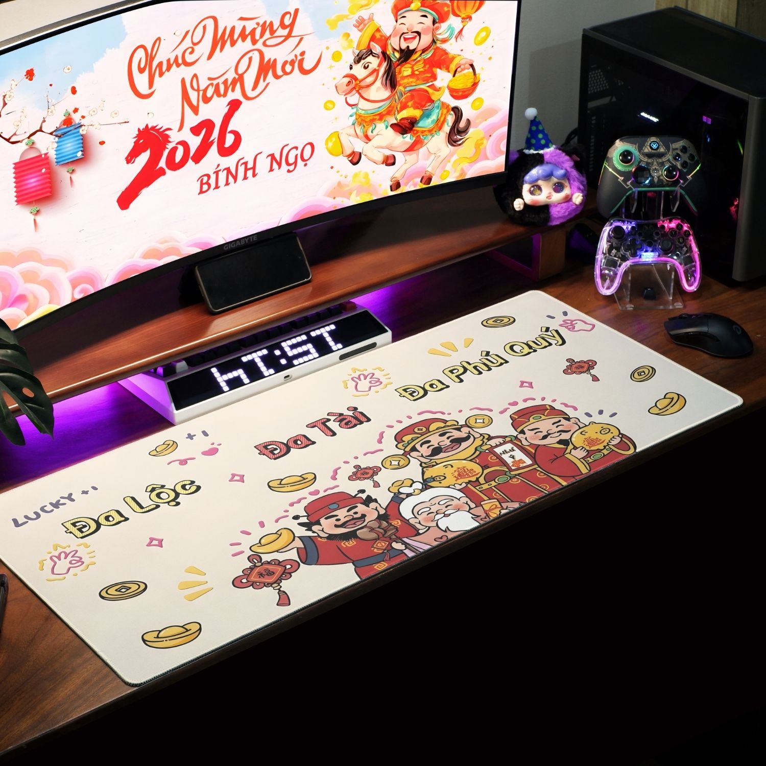 Thảm lót chuột/deskmat TẾT BÍNH NGỌ 2026 cỡ lớn 900 × 400 × 3 mm
