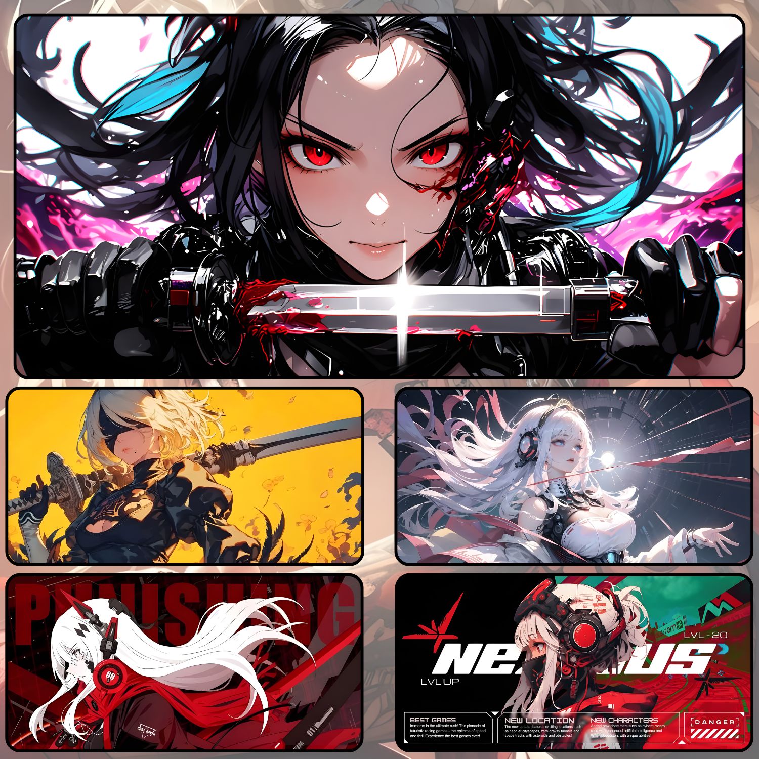Thảm lót chuột/deskmat WARRIOR AI GIRL cỡ lớn 800 × 300 × 5 mm cho bề mặt êm ái hơn hẳn
