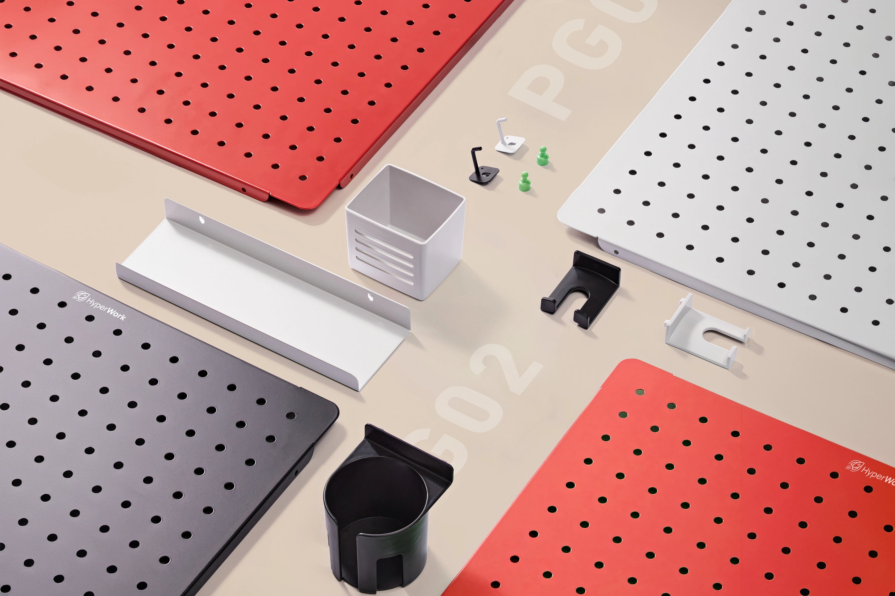 Dựa trên nghiên cứu hàng loạt thiết kế và phụ kiện dành cho Pegboard trên thị trường, HyperWork đưa vào sản phẩm của mình 14 phụ kiện thiết yếu nhất, đáp ứng tốt cho hầu hết nhu cầu.