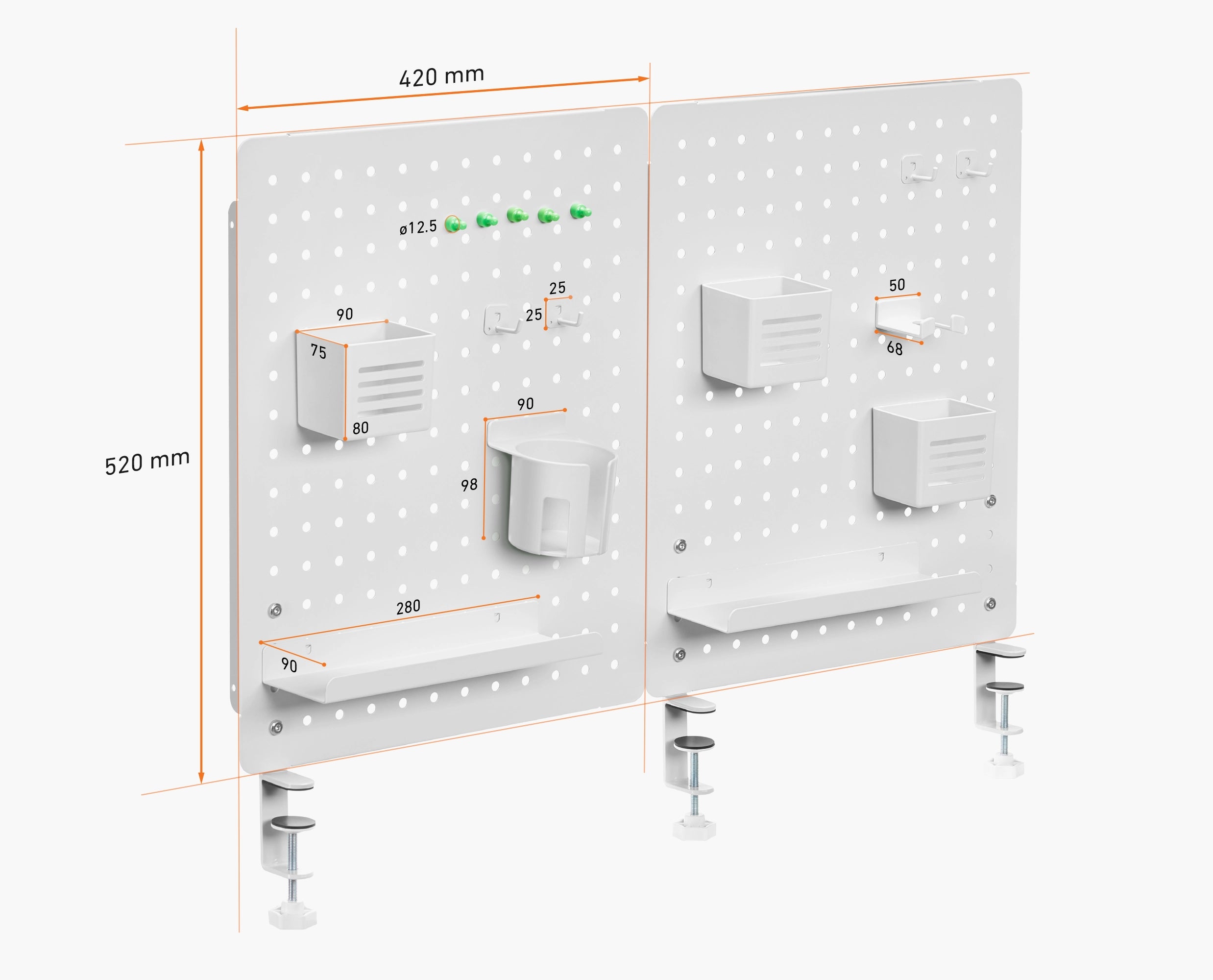 Giúp kết nối không giới hạn không gian, kể cả góc vuông của bàn, tạo không gian chỉ riêng của bạn - Phụ kiện ghép nối được tặng kèm khi bạn mua 02 Pegboard.